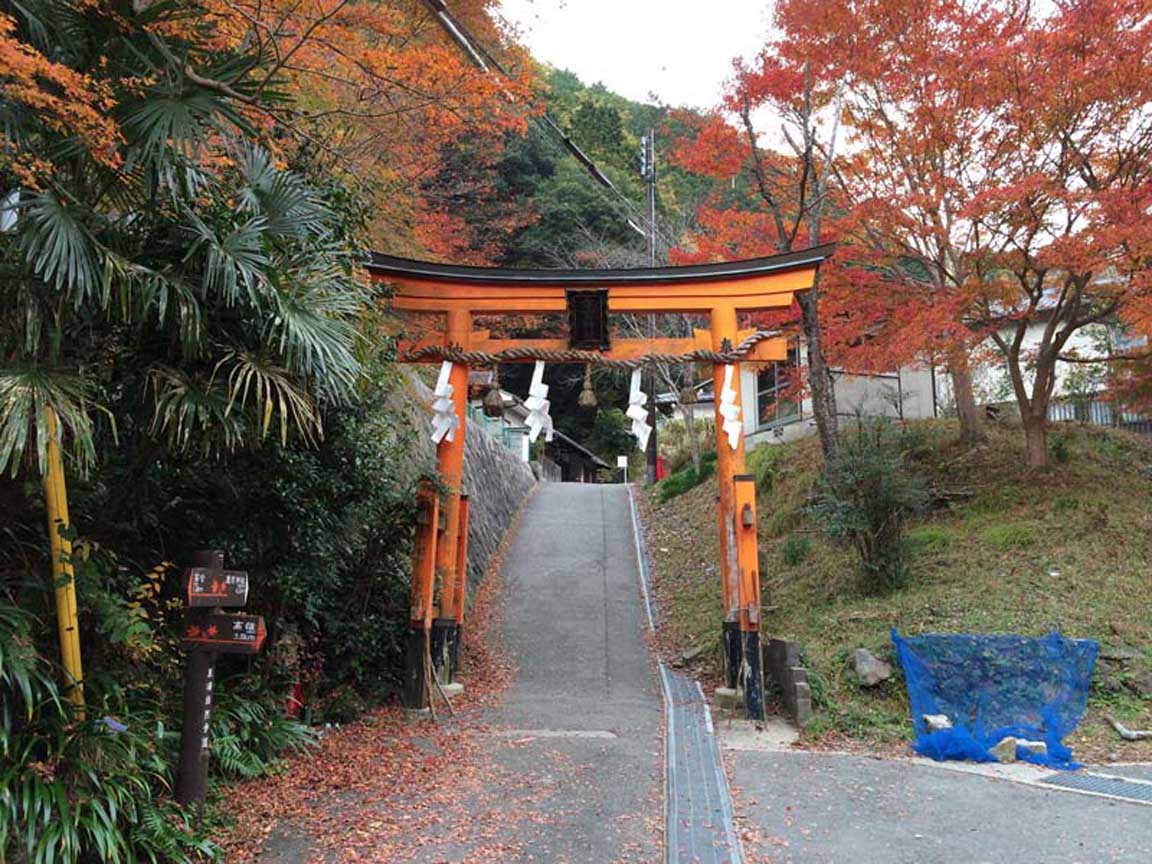橋を渡って、左に行くと鳥居が見えてきます。